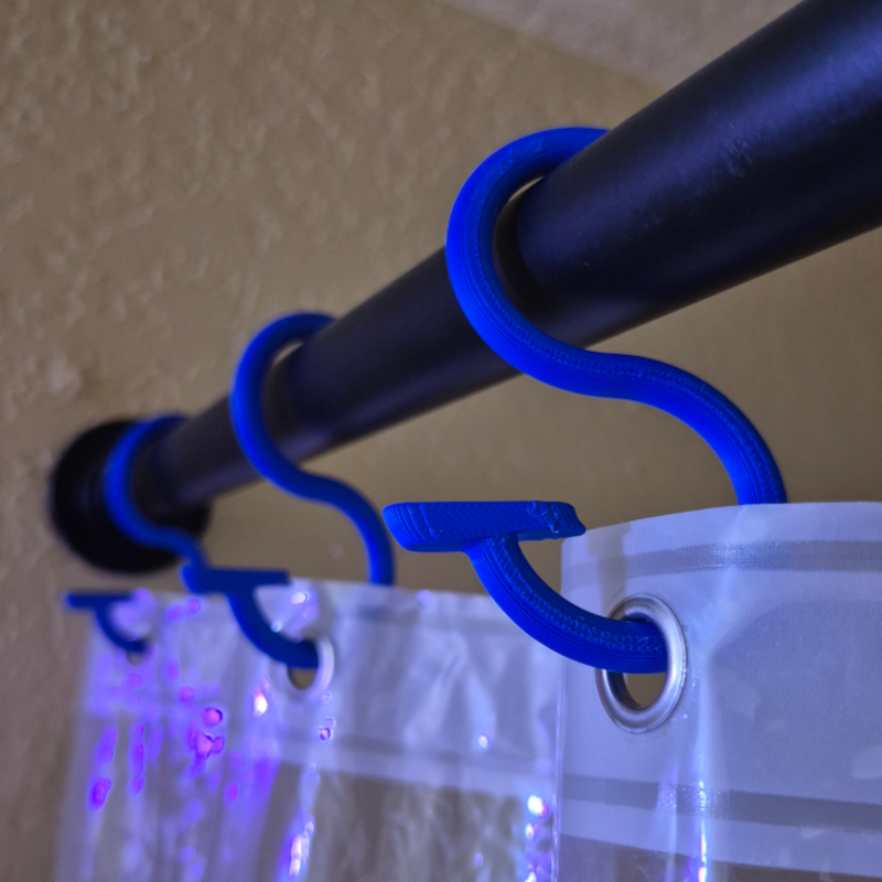 A practical S‑hook for shower curtain setups and hanging lightweight bathroom items. Quick to install and easy to move around when you want to reorganize.